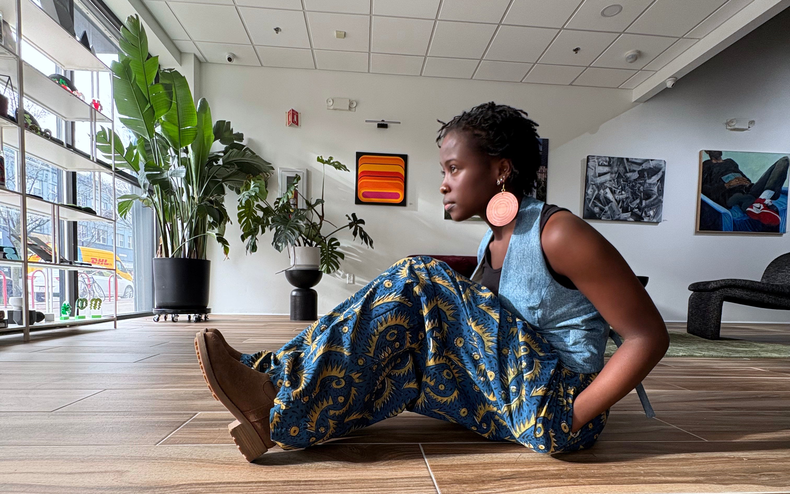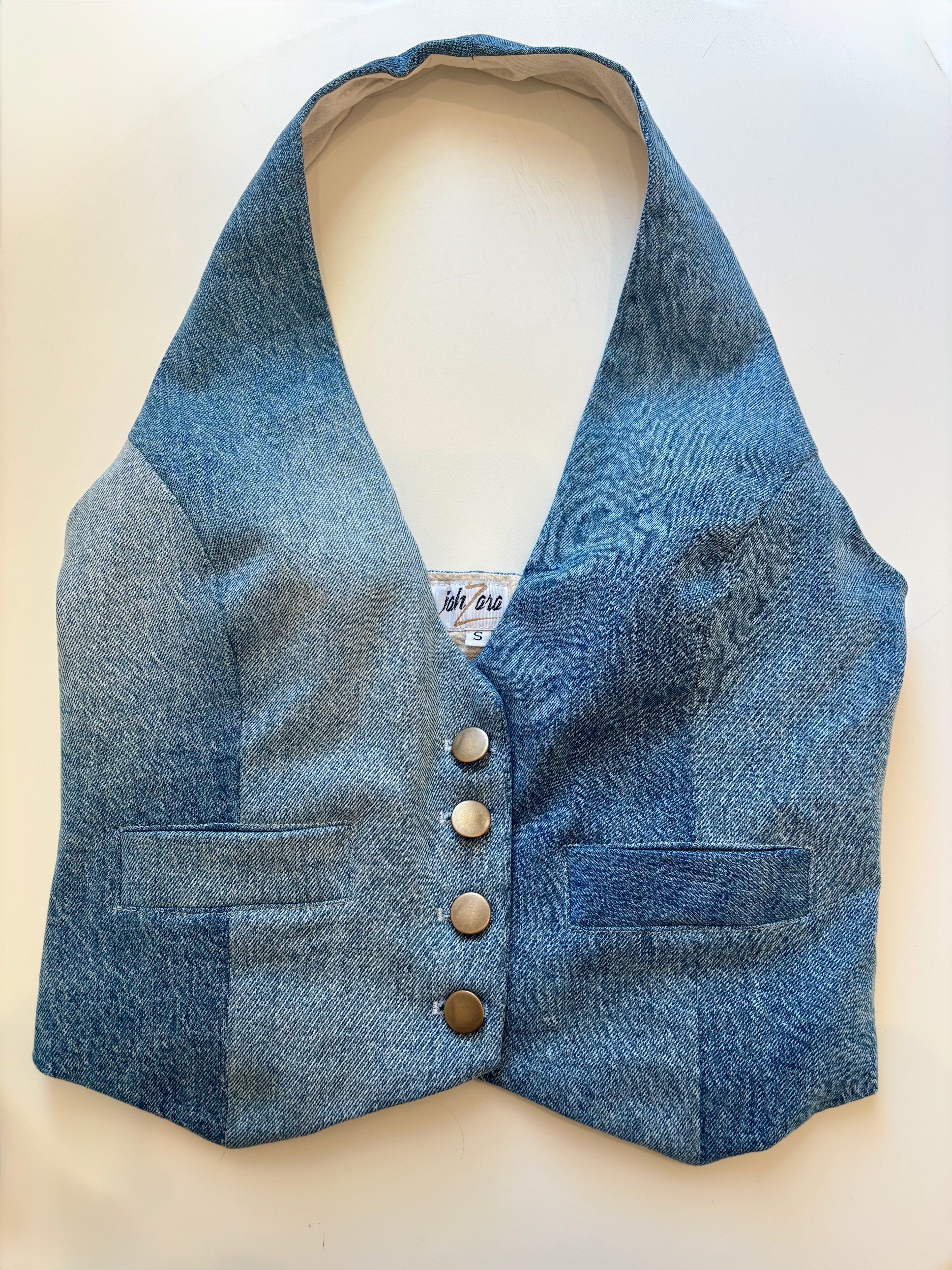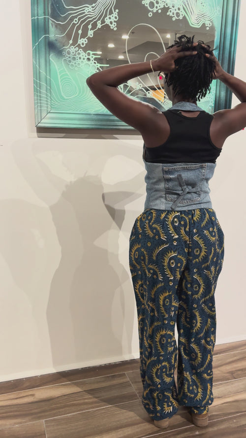 Mud Cloth Puffer Vest with Corduroy Yoke